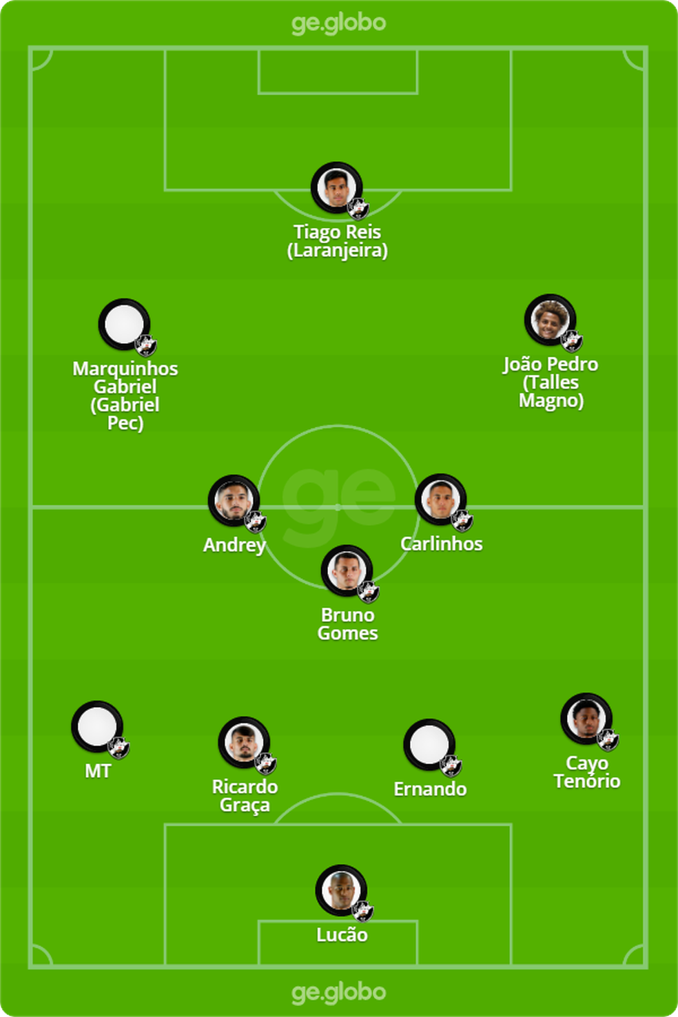 Time provável: Lucão, Cayo Tenório, Ernando, Ricardo Graça e MT; Bruno Gomes, Andrey e Carlinhos; Marquinhos Gabriel (Talles Magno), João Pedro (Gabriel Pec) e Tiago Reis (Laranjeira).