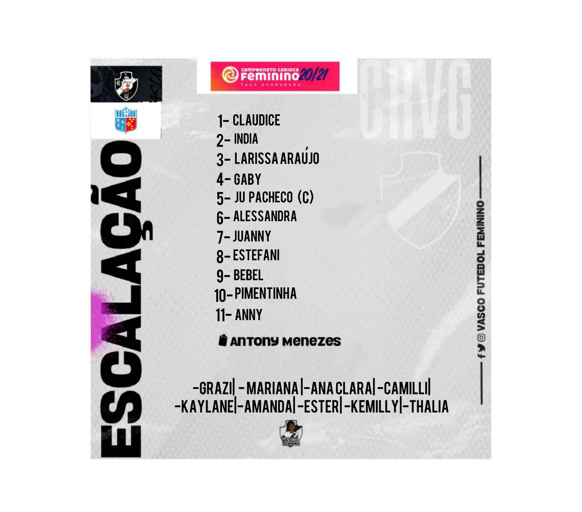 09/03/21 - Feminino: Confira a escalação do Vasco para o jogo contra o America