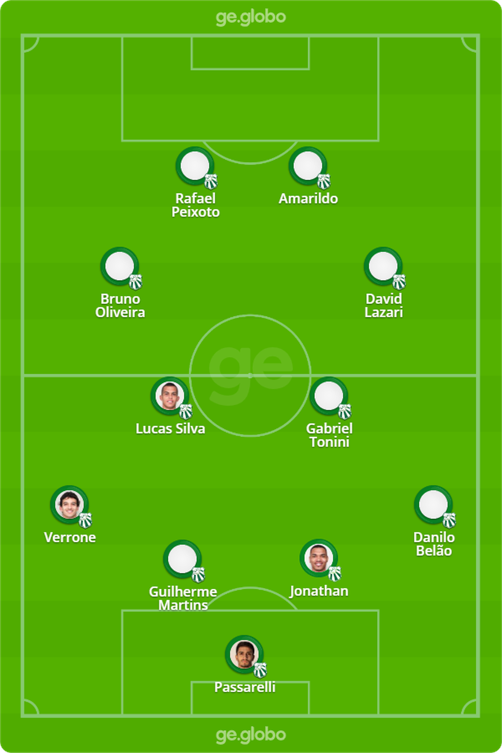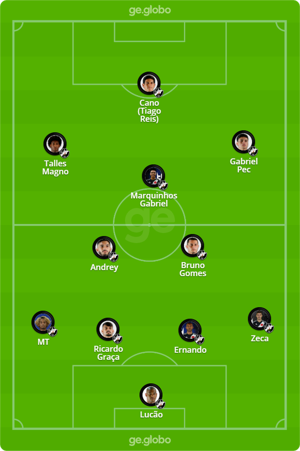 Provável escalação: Lucão; Zeca, Ernando (Leandro Castan), Ricardo Graça e MT; Bruno Gomes, Andrey e Marquinhos Gabriel; Pec, Tiago Reis (Cano) e Talles.