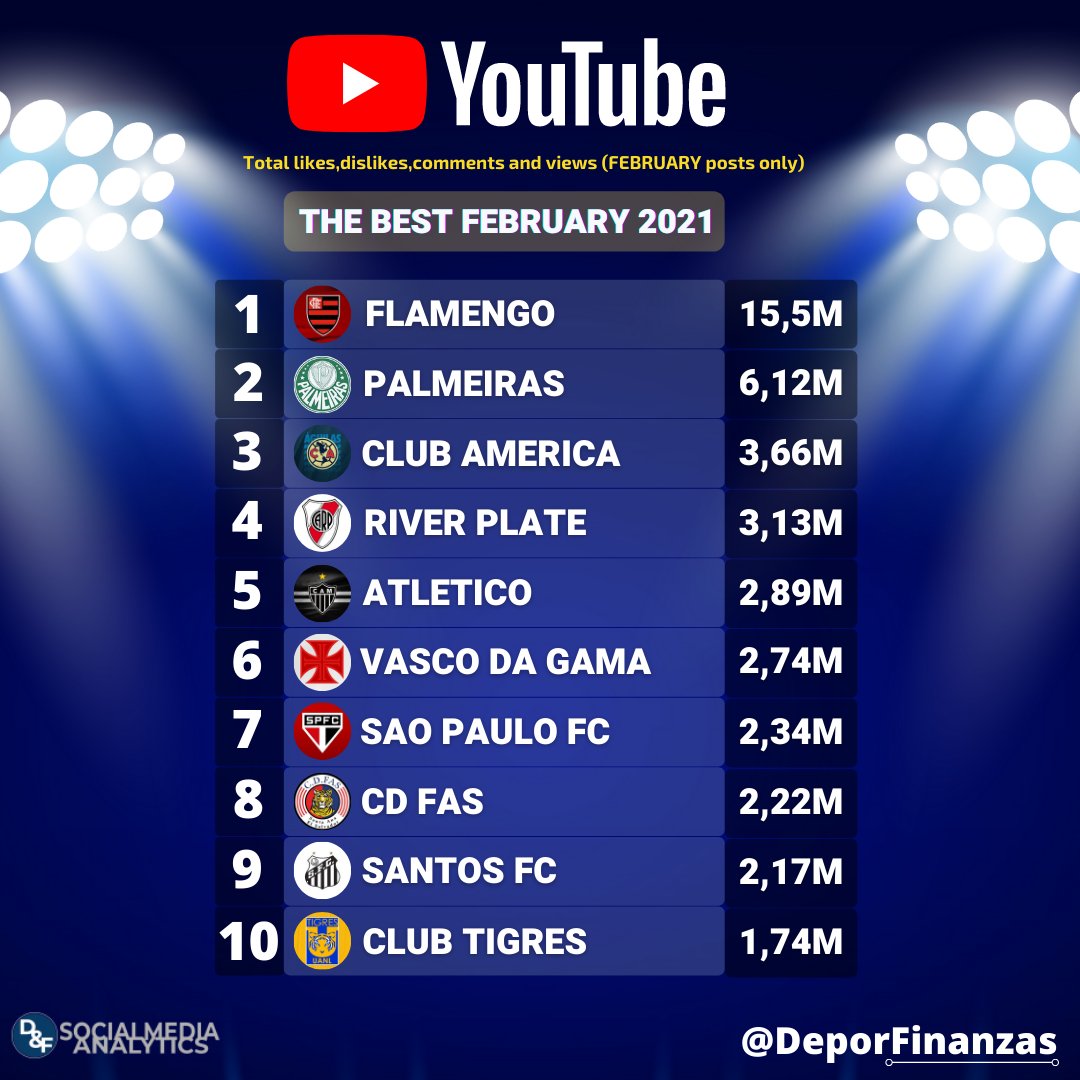 ?⚽ AMERICA ⏯ Best clubs on #YouTube during february 2021!