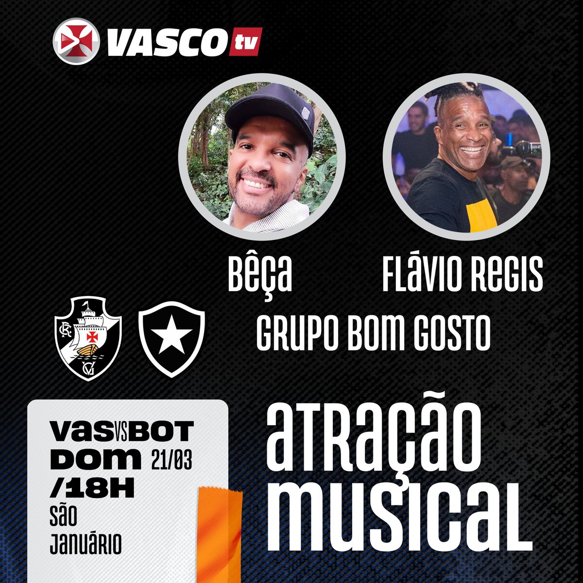 VascoTV terá atração musical neste domingo de Bêça e Flávio Regis, do Grupo Bom Gosto