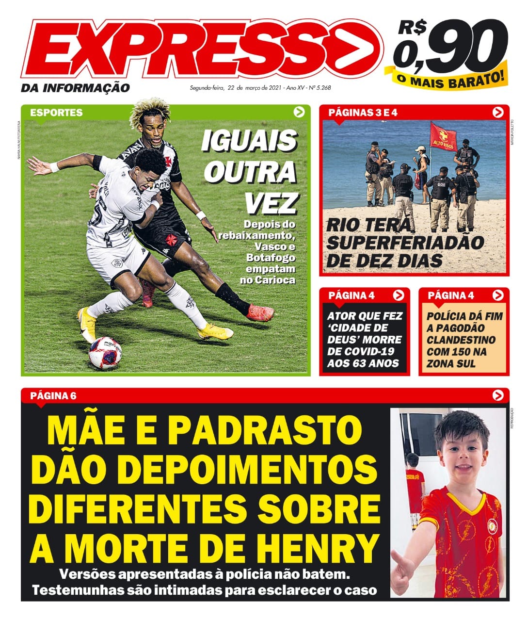 Pelo Campeonato Estadual, Vasco e Botafogo empataram por 1 a 1 na noite do último domingo em São Januário. Veja as capas dos jornais.
