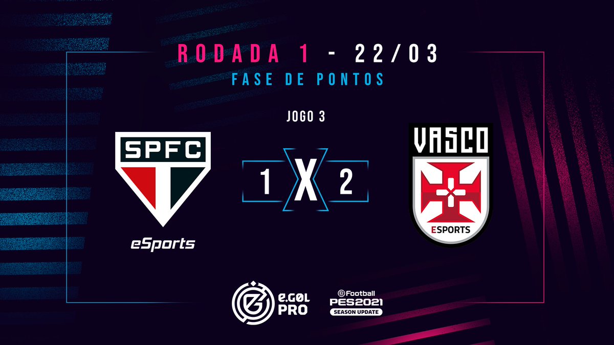 O time de eSports do Vasco da Gama venceu o São Paulo pela primeira rodada do eGol Pro, torneio de Pro Evolution Soccer (PES 2021). A equipe Cruzmaltina comandada por Allan de Campos, Eduardinho e Gabriel Franja venceu por 2 a 1 o time são-paulino. Além do trio titular, o elenco ainda conta com Fabrício Paes, Diego ‘China' e Kaique ‘Reizin'. A competição conta com oito equipes e todas se enfrentam em turno e returno, totalizando 14 jogos. Os quatro melhores times se classificam para a fase mata-mata. O próximo jogo do Gigante da Colina será contra o Internacional nesta terça-feira (23/03), a partir das 17h, com transmissão do canal e-SporTV no Youtube.