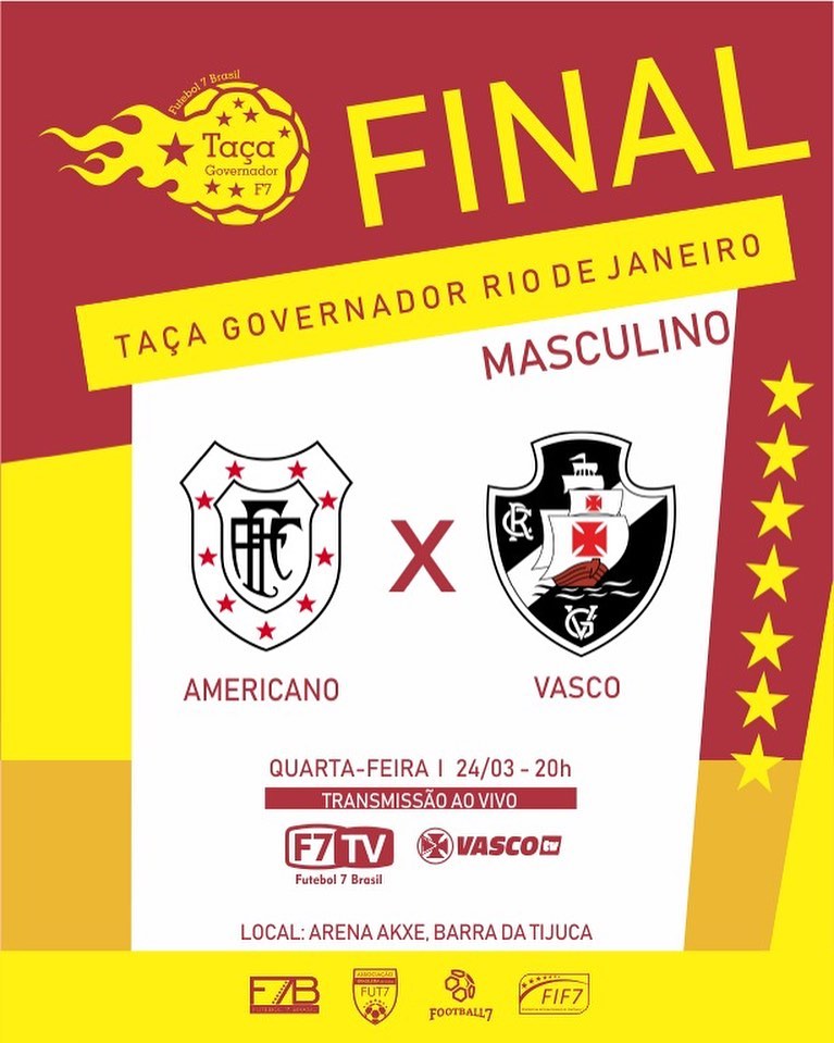 Devido ao decreto que entrará em vigor na próxima sexta-feira a final da Taça Governador foi antecipada no Rio de Janeiro. O duelo decisivo entre @americanofut7 e @vascofut7 será nesta quarta-feira, às 20h ao vivo na Futebol 7 Brasil TV e Vasco TV pelo Facebook Watch.