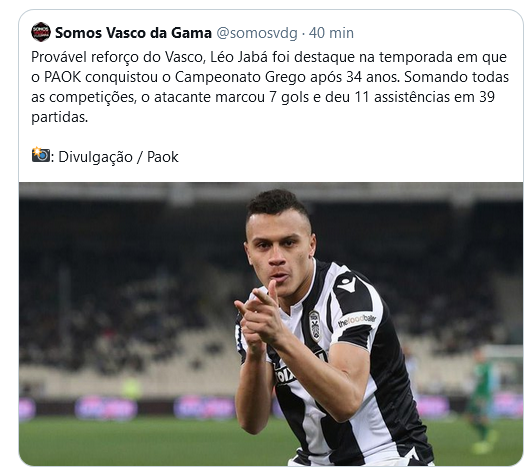 Fonte: Twitter da jornalista Yana Gomes/Supervasco