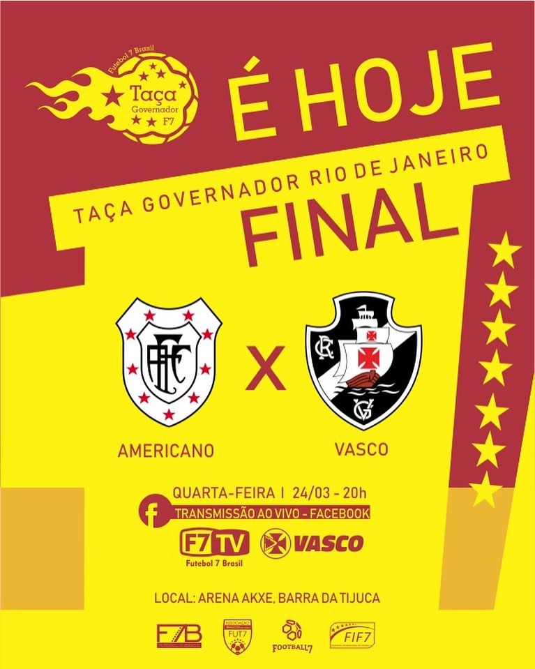Futebol 7: Vasco decide a Taça Governador contra o Americano nesta 4ª às 20h com transmissão pelo Facebook