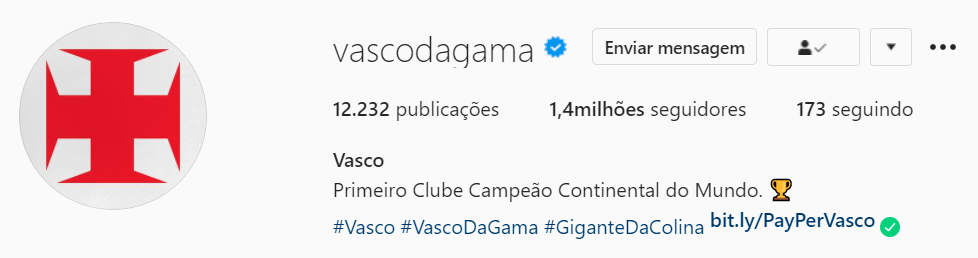 O Vasco adotou Cruz de Malta das costas do seu terceiro uniforme como imagem de perfil de suas redes sociais. Veja como ficou.