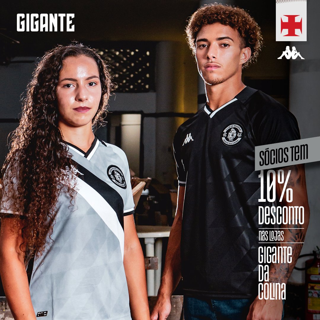 Vasco publica foto das novas camisas e informa que sócios ativos têm 10% de desconto nas lojas Gigante da Colina