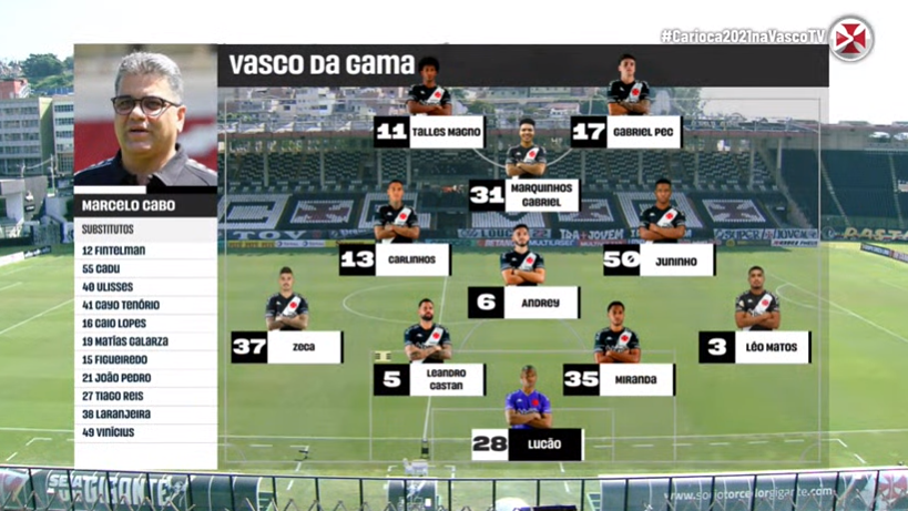 VascoTV apresenta disposição tática do time titular desta 4ª-feira; confira