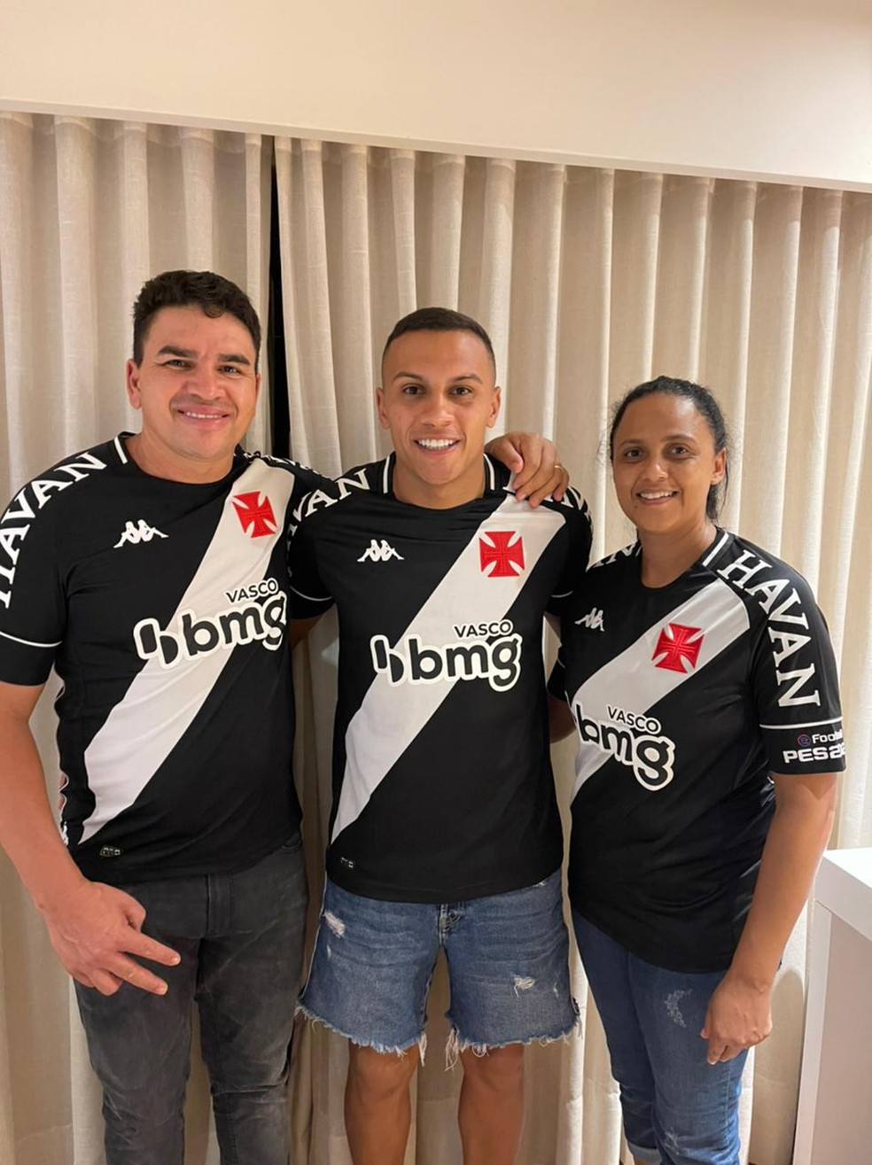 Reforço do Vasco, Léo Jabá, posa ao lado do pai, o vascaíno Silvan, e da mãe, Rosângela |