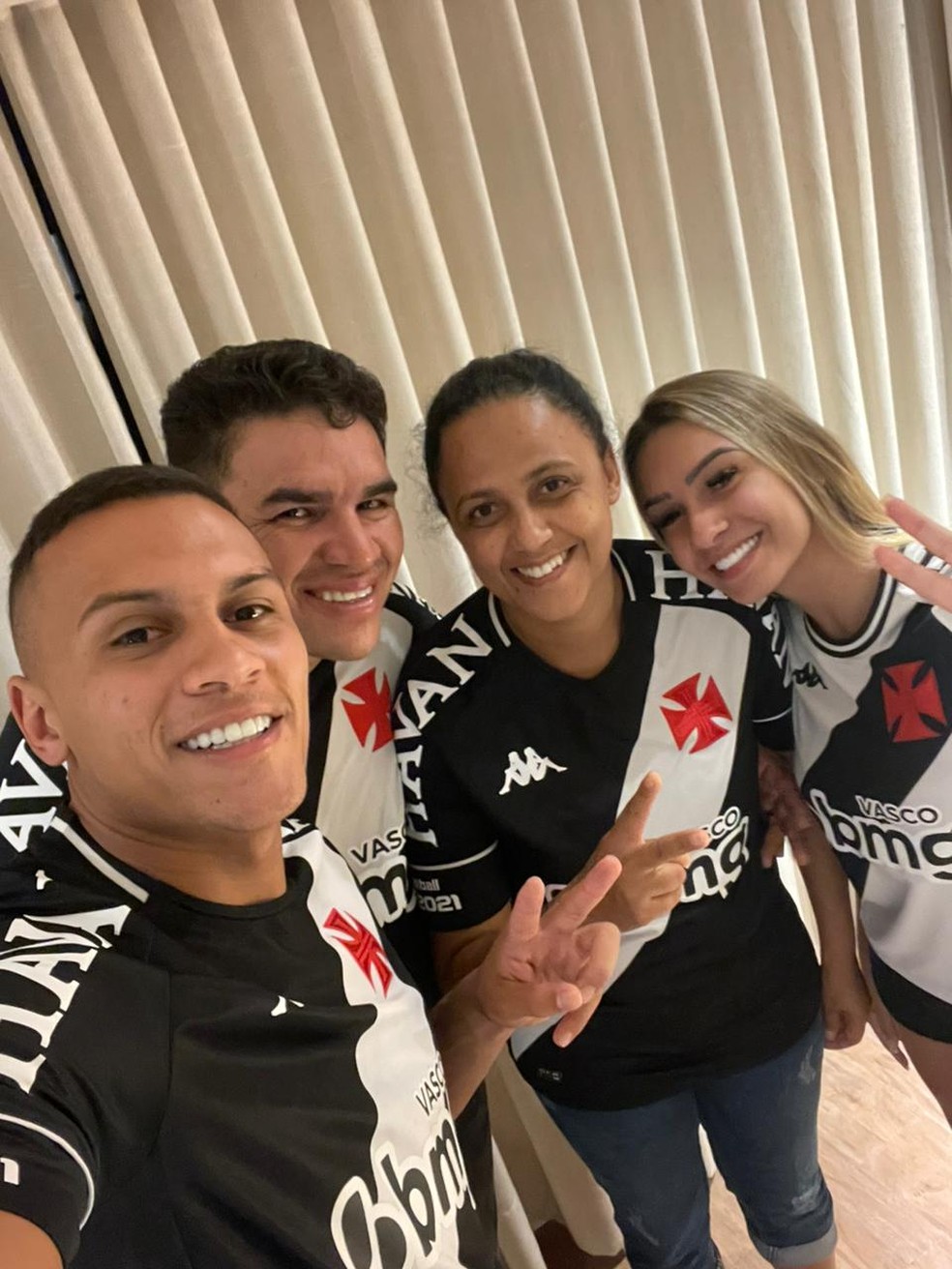Léo Jabá, Silvan (pai), Rosângela (mãe) e Eduardo (esposa) comemoram chegada ao Vasco |