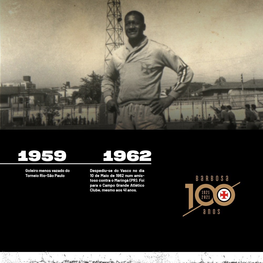 Vasco publica linha do tempo da trajetória de Barbosa pelo clube; confira