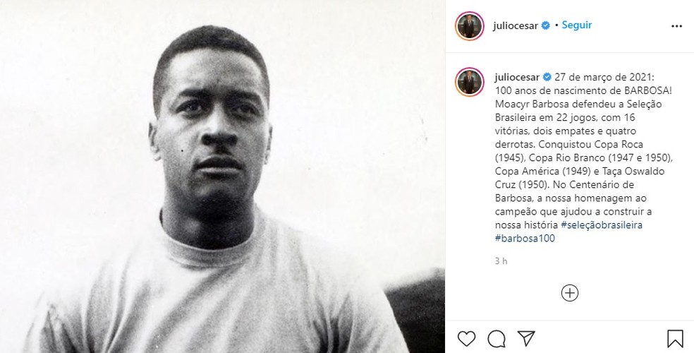 A pedido da CBF, alguns goleiros e ex-goleiros postaram uma foto em suas redes sociais com a #Barbosa100 como forma de homenagear o centenário do ídolo do Vasco. Barbosa era o goleiro na campanha do Brasil na Copa de 1950 e durante muito tempo foi considerado o grande culpado pelo que ficou conhecido como Maracanazzo.
