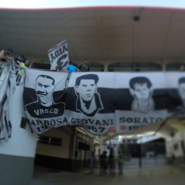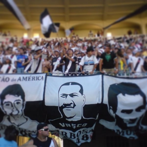 Lá pelos anos de dois mil e Orkut fiz um desenho do Barbosa e lancei na comunidade da @gdavg_ Usaram a imagem sem me avisar, por isso a felicidade veio junto com surpresa quando vi a bandeira pela TV na frente da torcida. #Barbosa100 [ ]