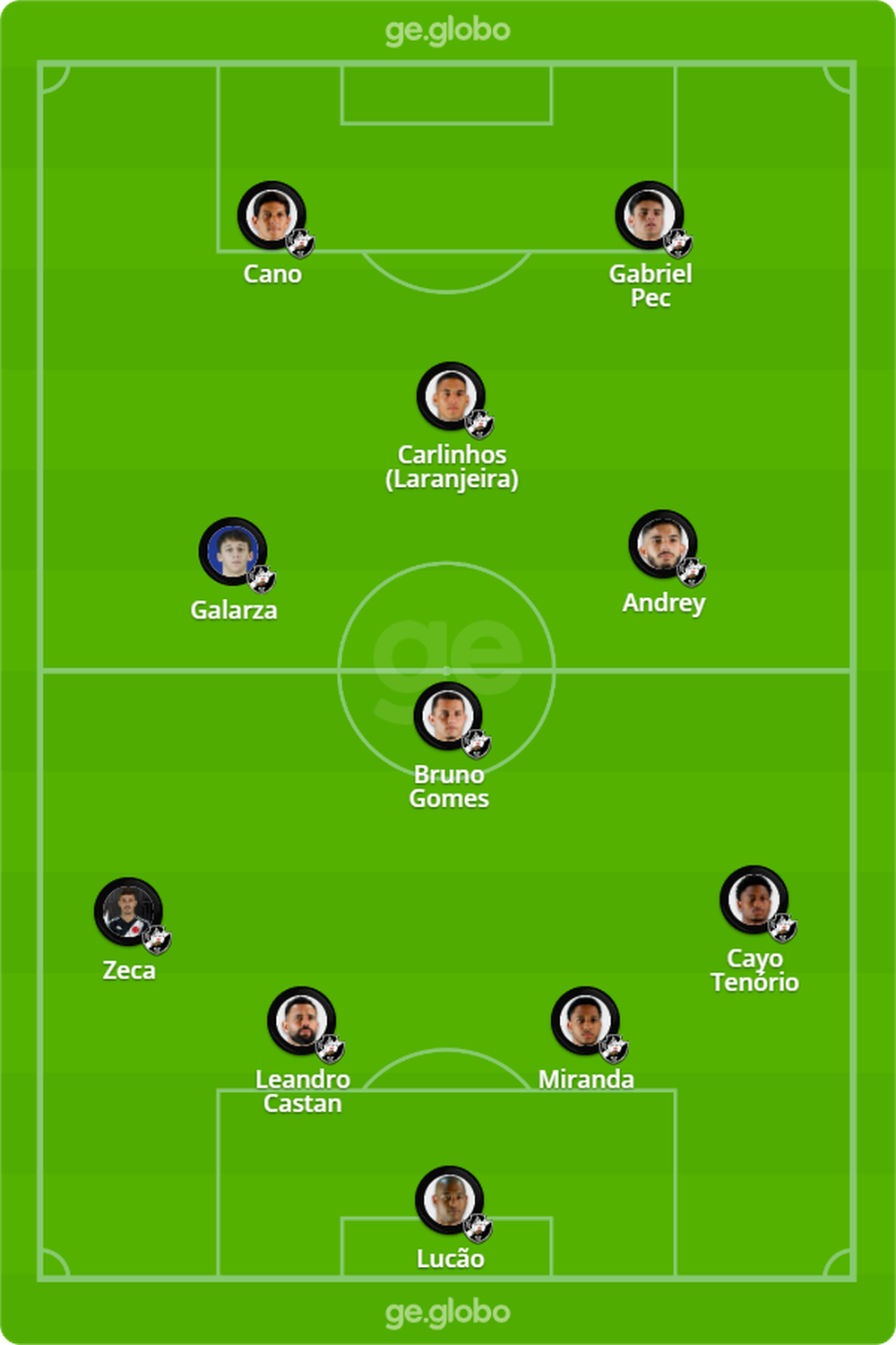 Provável escalação: Lucão; Cayo Tenório, Miranda, Leandro Castan e Zeca; Bruno Gomes, Andrey, Galarza e Carlinhos (Laranjeira); Pec e Cano.