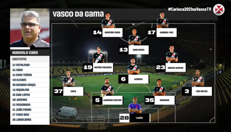 VascoTV apresenta disposição tática do time titular desta 3ª-feira; confira