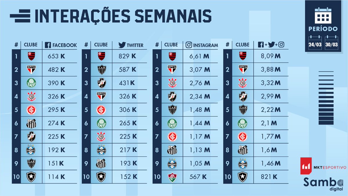 O clube alcançou a 3ª colocação no Twitter e a 4ª no Instagram.