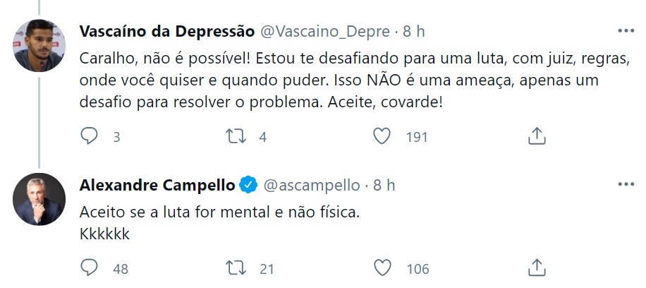 23/03/21 - Campello responde Bastos: 'Ele tem razão. O Vasco não é a Disneylândia. Talvez eu já devesse ter dispensado o Pateta antes'