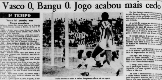 Confusões em campo são comuns no futebol, e no Campeonato estadual de 1977, Bangu x Vasco se enfrentaram no Estádio Proletário em 14 de agosto de 1977.