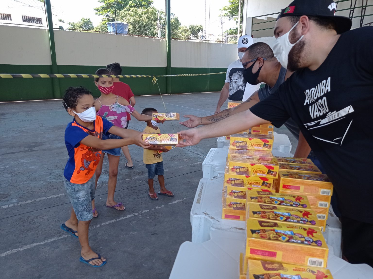 No clima de solidariedade da Páscoa, um grupo de torcedores do Vasco distribuiu, na manhã deste sábado, 600 caixas de bombom na Barreira do Vasco, comunidade que fica colada em São Januário. Os cruz-maltinos se organizaram através de redes sociais e aplicativos de trocas de mensagens, e tiveram a contribuição de cerca de 70 torcedores que fizeram doações para a compra dos chocolates.
