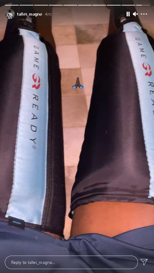Longe dos gramados, Talles Magno sofreu entorse no joelho e passou por cirurgia. O atleta, que se recupera aos poucos, mostrou trecho do seu tratamento em seu Instagram.