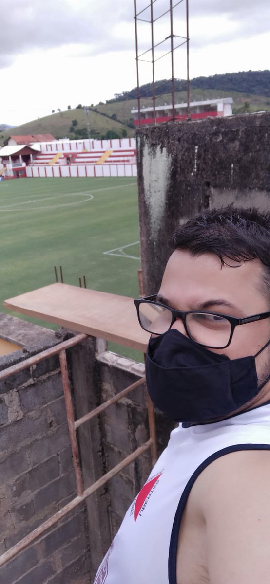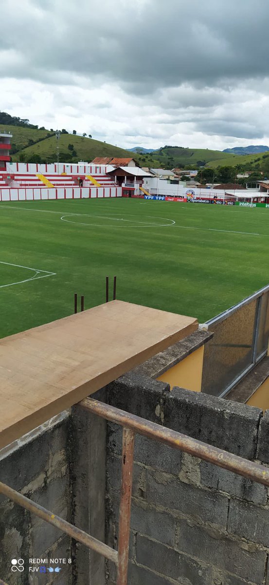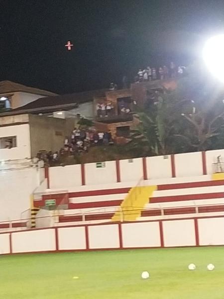 Mais cedo, um torcedor também achou uma obra com "vista privilegiada" para o campo de estádio Almeidão