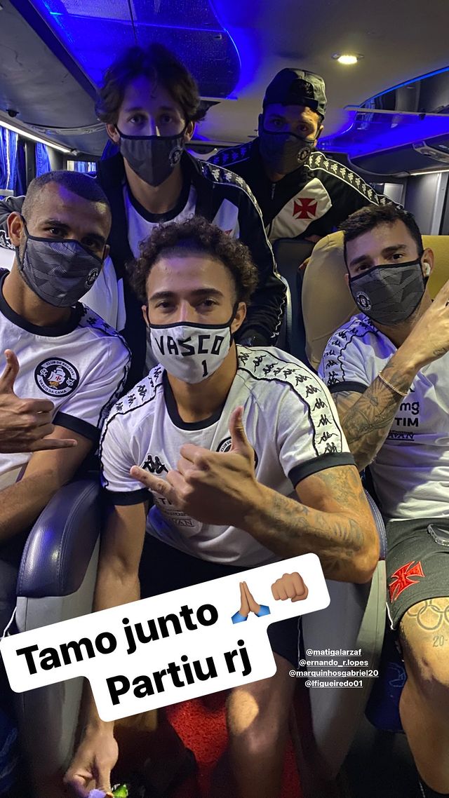 Zeca publica foto com seus companheiros de Vasco no ônibus, a caminho do Rio