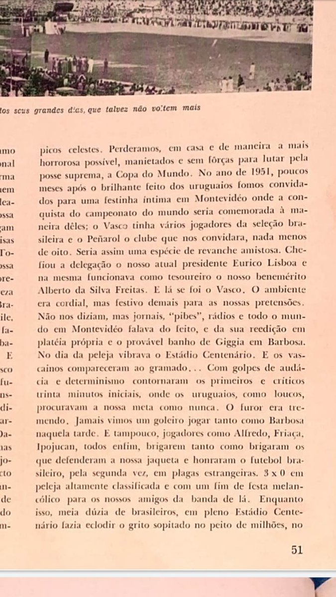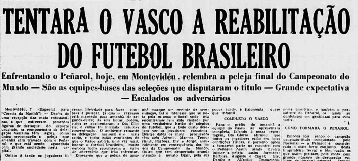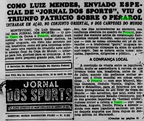 Em 1951, o Vasco (base da Seleção Brasileira) enfrentou o Peñarol (base do Uruguai) dentro de Montevidéu, num dos maiores jogos entre clubes da história do futebol no século.