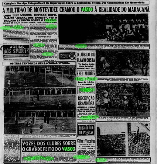 No dia seguinte a primeira capa do Jornal dos Sports só falava de uma coisa