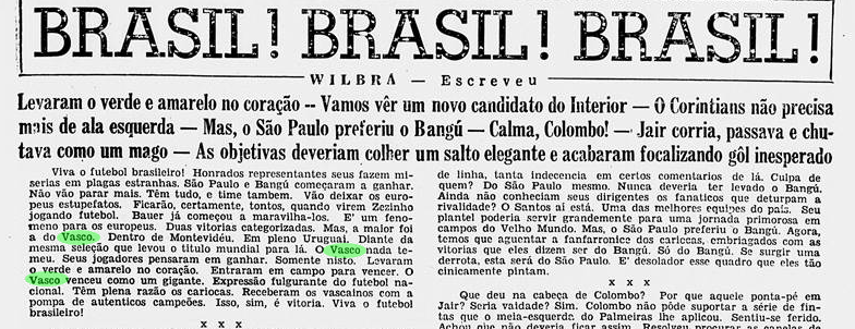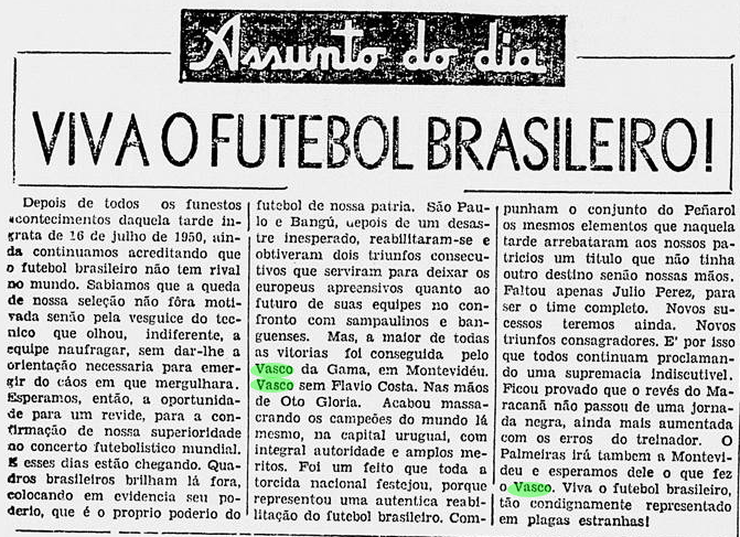 Mas a multidão não viu bem o que esperava: os brasileiros, que tanto sofreram na final da Copa, simplesmente massacraram os campeões do mundo na casa deles. Não teve Ghiggia, Schiaffino ou Obdulio que parasse o Vasco.
