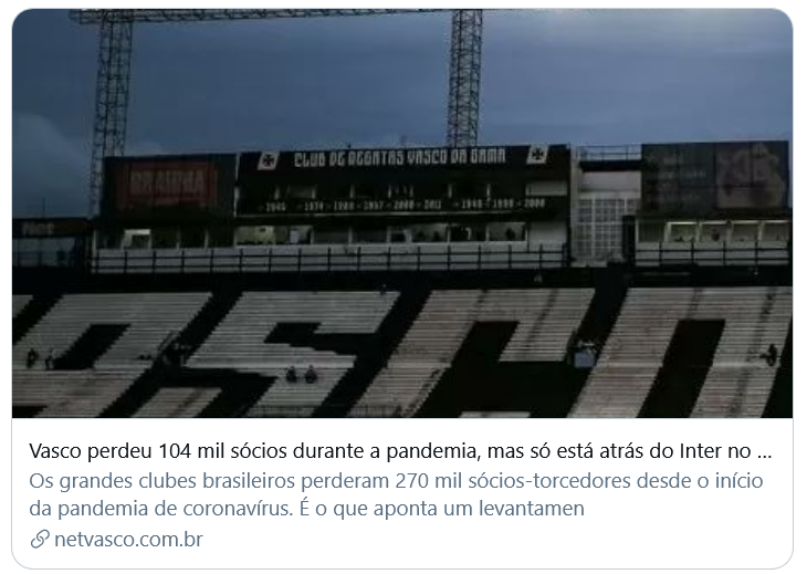 Muito orgulho da torcida do Vasco que mesmo em uma pandemia se mantém como 2o lugar no Brasil. E com o clube entregando muito pouco