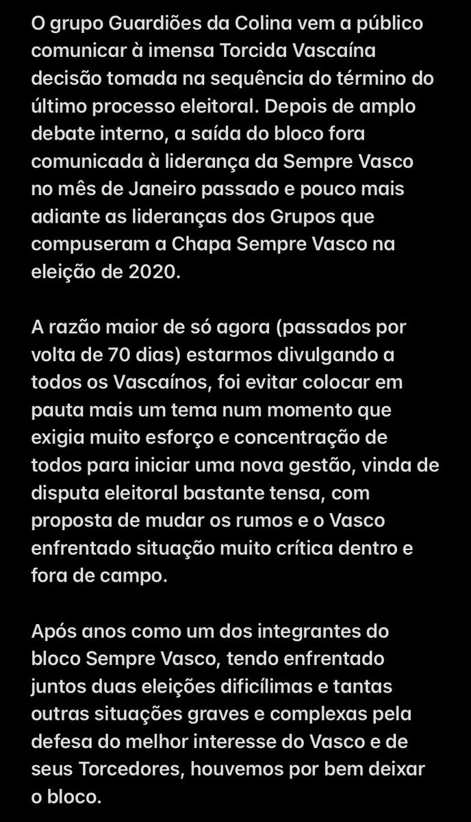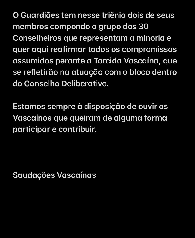 NOTA OFICIAL - Saída do bloco da Chapa Sempre Vasco