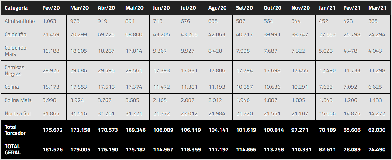 13/03/21 - Vasco fechou fevereiro com 78.089 sócios, sendo 65.606 sócios-torcedores; veja números e lista