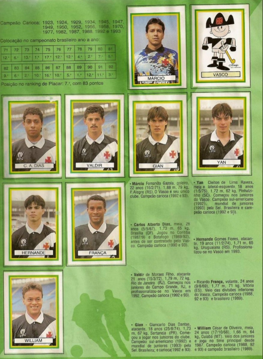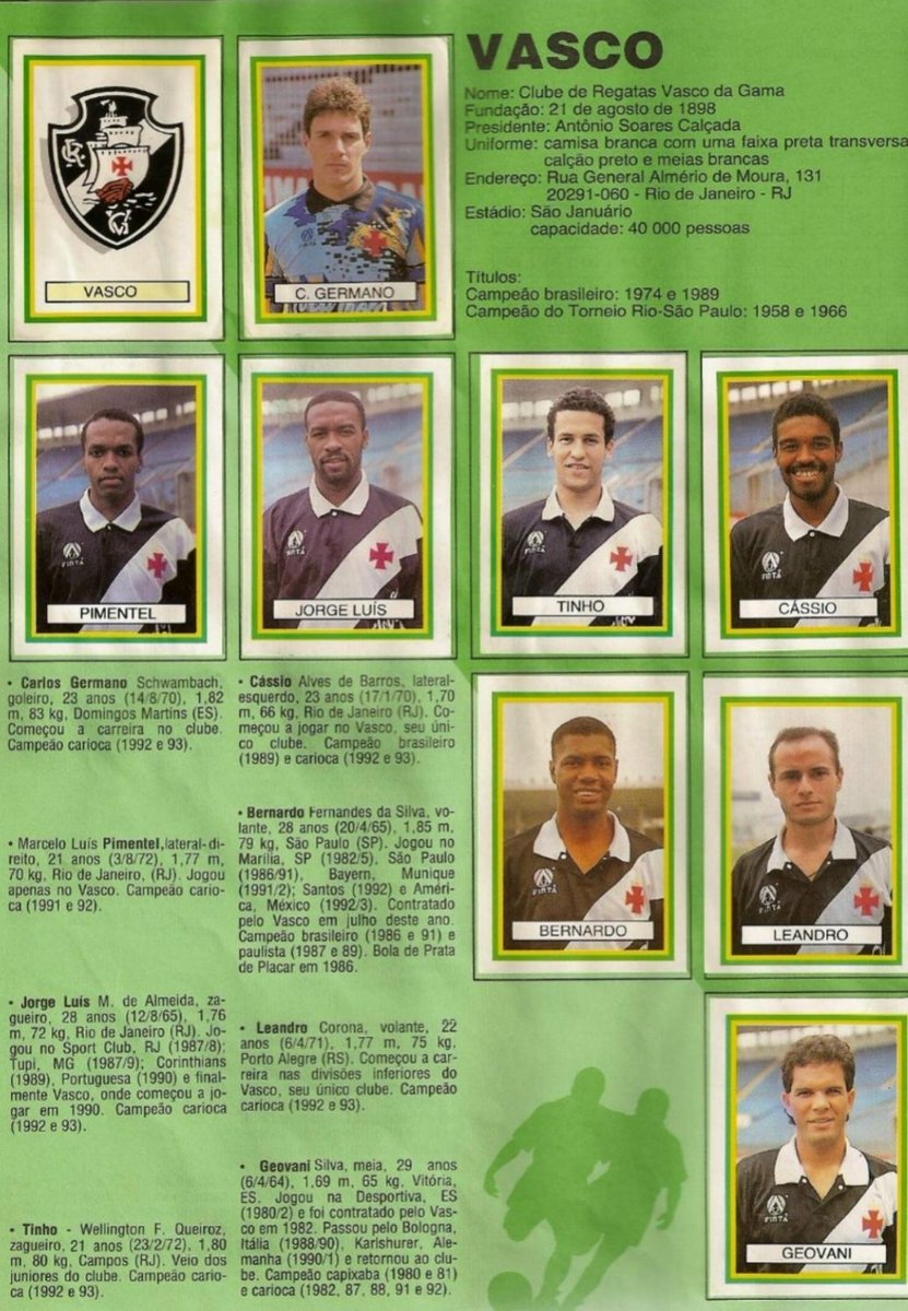 Veja as páginas do Vasco do álbum de figurinhas do Campeonato Brasileiro de 1993
