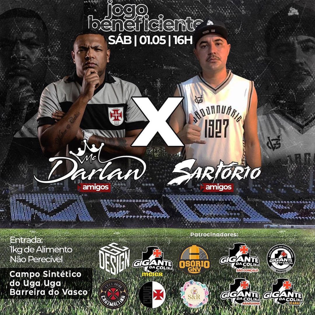 MC Darlan e Fernando Sartório farão jogo beneficente em prol dos moradores da Barreira do Vasco em 1º de maio