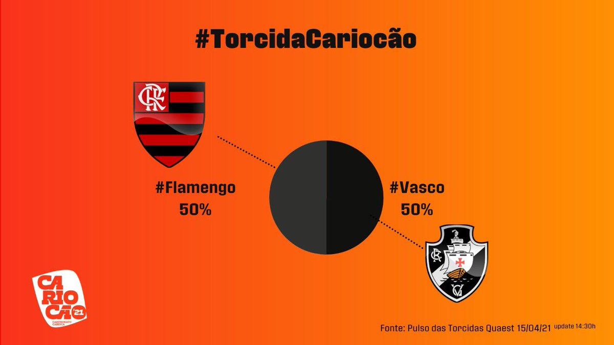 Vasco empata com o Urubu em nova parcial do Torcidômetro: 50% a 50%