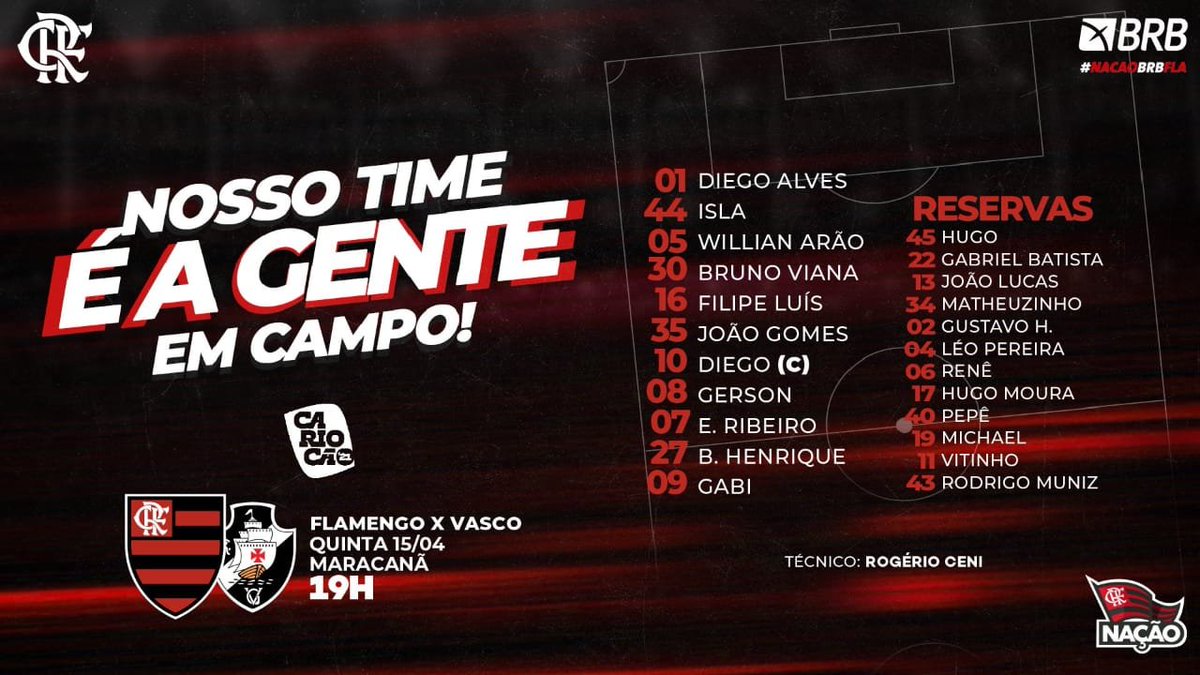 Veja a escalação do Urubu para o jogo contra o Vasco