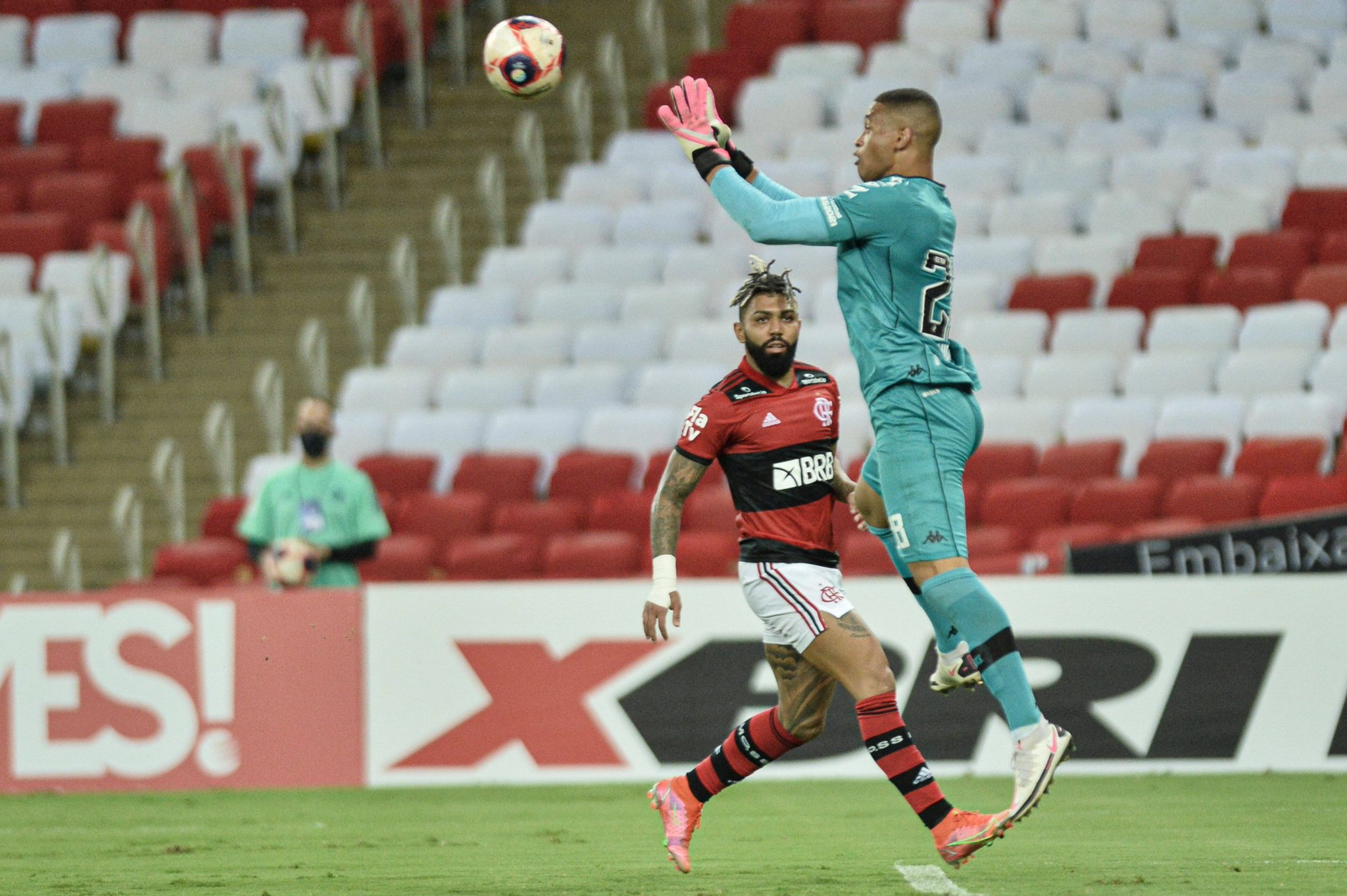 O Flamengo esboçou uma blitz na defesa vascaína no fim do primeiro tempo e perdeu duas chances com Gabigol e Isla, que mandaram a bola para fora.