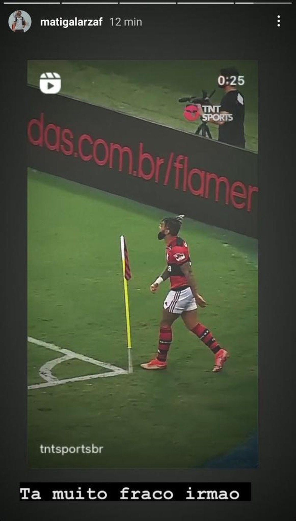 A brincadeira seguiu depois da partida. O jovem paraguaio Matías Galarza, que chegou a se estranhar rapidamente com Gabriel em campo, respondeu no Instagram: