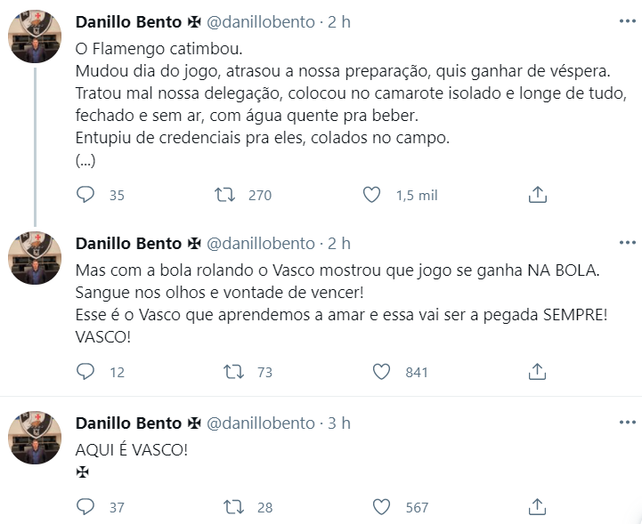 VP de comunicação Danillo Bento diz que delegação do Vasco não foi bem tratada no Maracanã