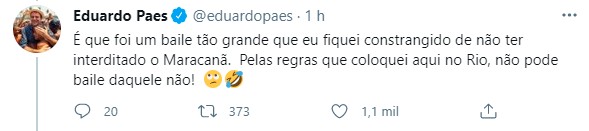 @arsj08 É que foi um baile tão grande que eu fiquei constrangido de não ter interditado o Maracanã. Pelas regras que coloquei aqui no Rio, não pode baile daquele não! ??