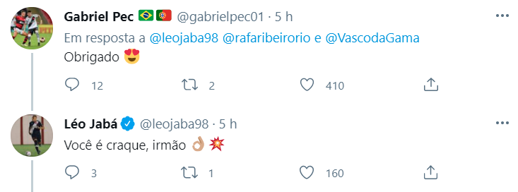 Fonte: Twitter do jogador Gabriel Pec, Twitter do jogador Léo Jabá