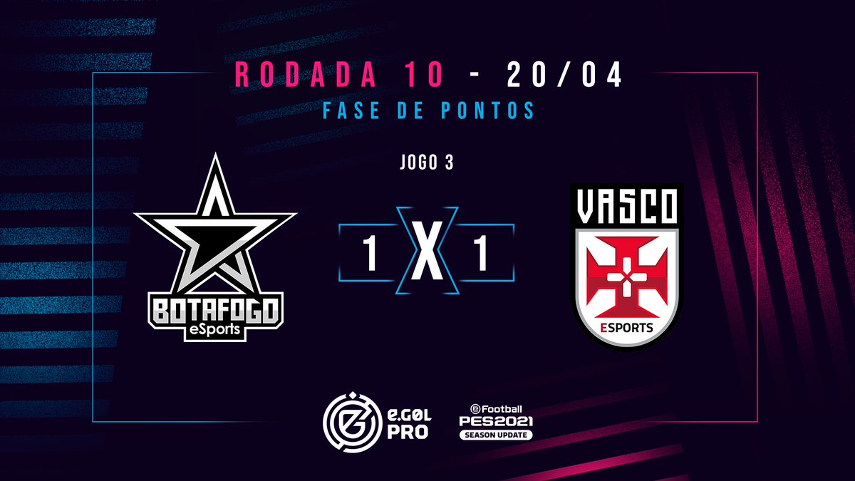 Clássico eletrizante! Apita o juizão e fim de jogo nos gramados virtuais do #eGOL! @BotafogoeSports e @vasco_esports levam 1 pontinho pra casa cada um.