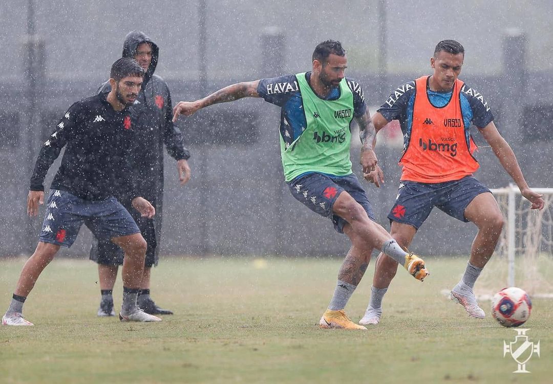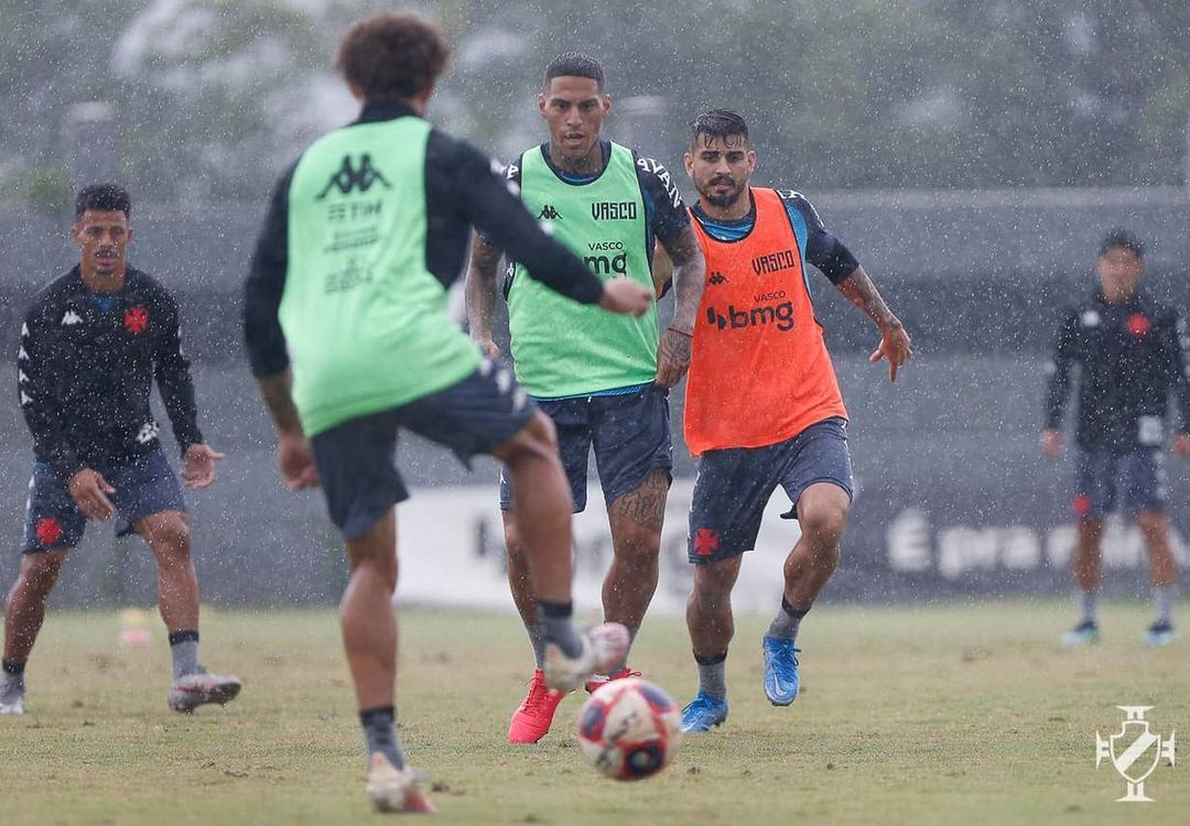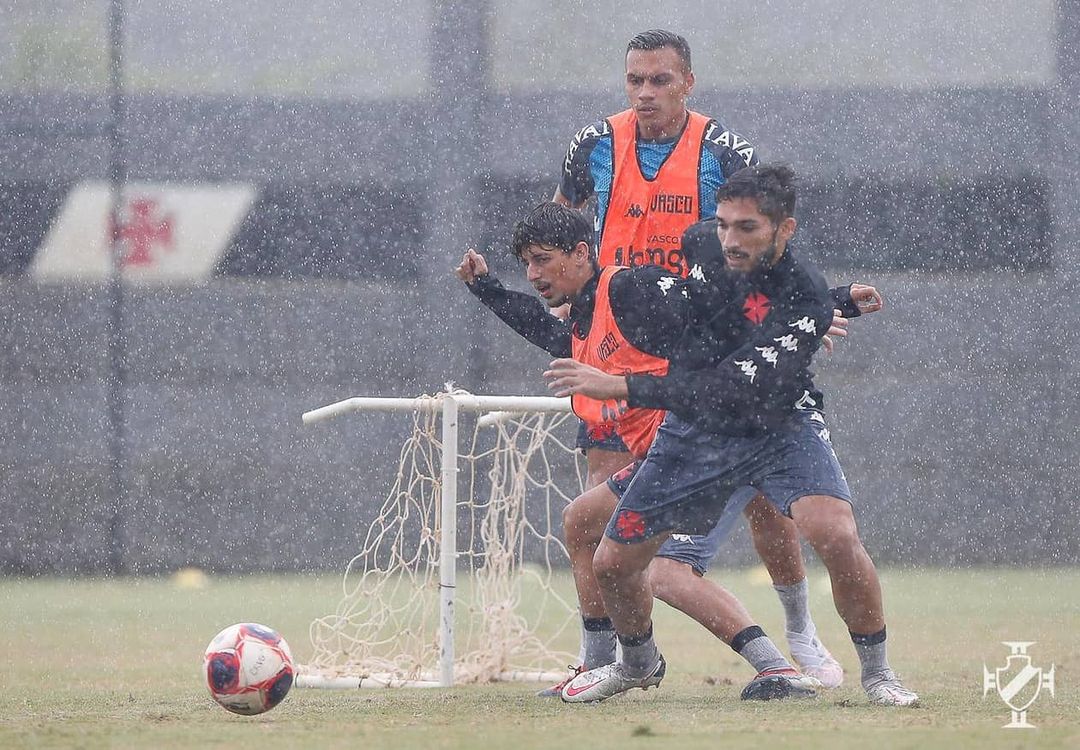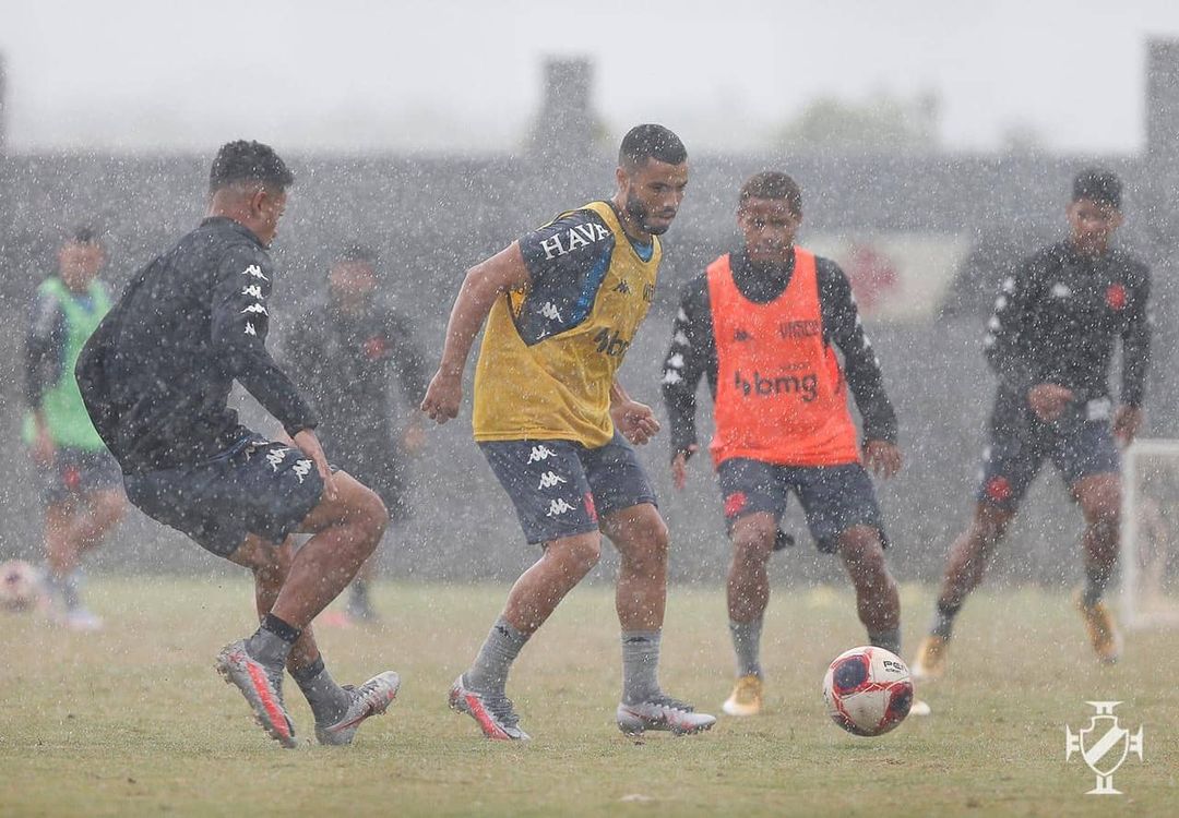 Vasco publica fotos do elenco treinando debaixo de chuva no CT; veja