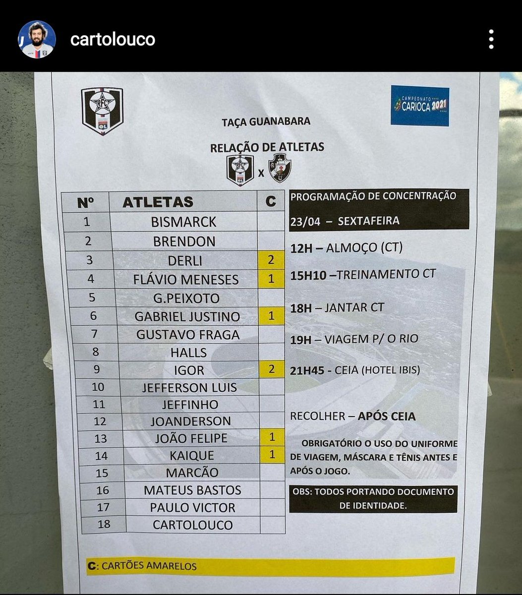 Inscrito no Estadual pelo Resende, Cartolouco é relacionado e pode estrear contra o Vasco neste sábado