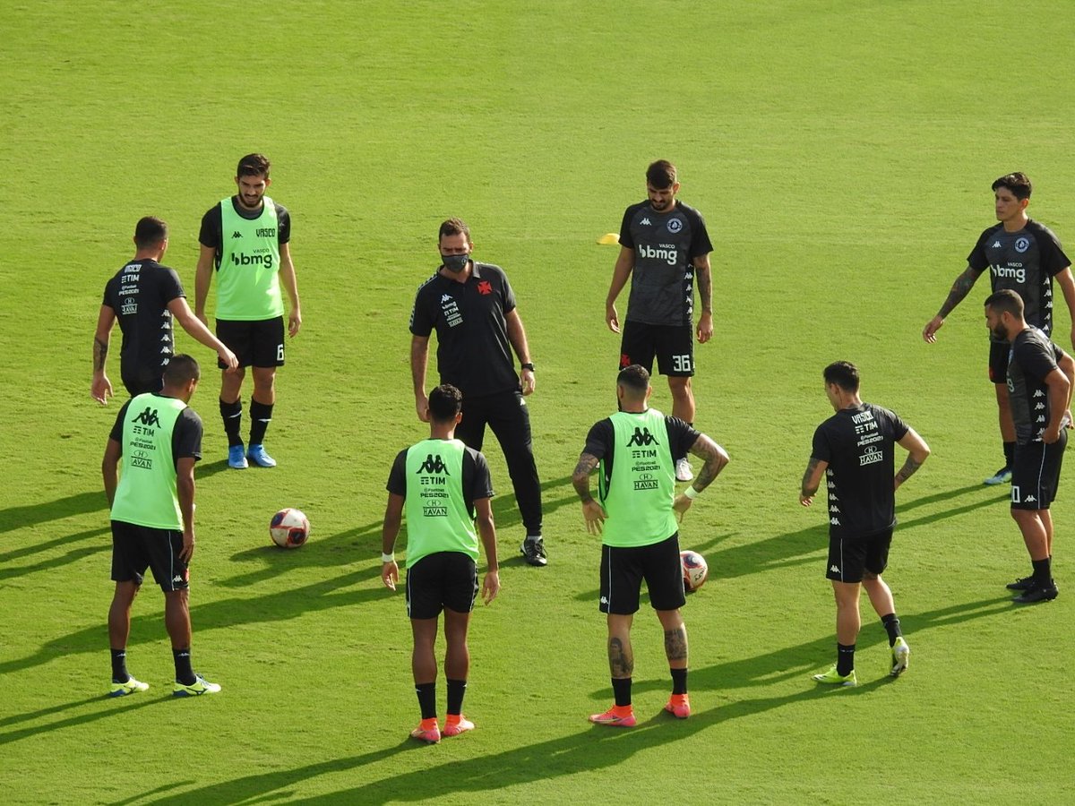 Elenco do Vasco se aquece no gramado de São Januário; veja foto