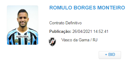 25/04/21 - Romulo ainda não foi registrado no BID da CBF nem no Bira da FFERJ