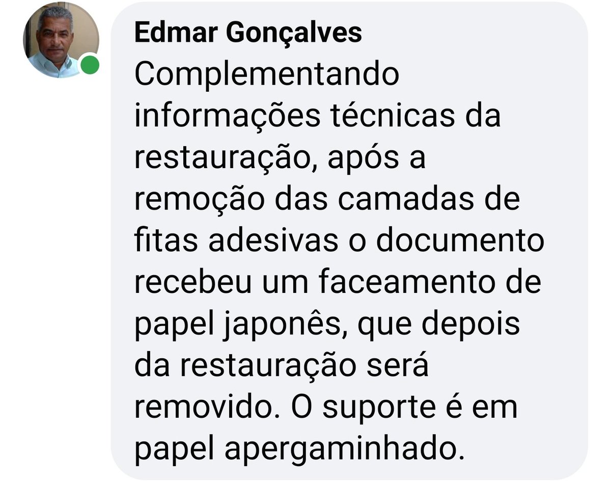 Na segunda foto o durex foi removido com destreza profissional e está revestido provisoriamente com papel vegetal para alinhamento correto e fixação para, por fim, restauro dos rasgos com papel pergaminho.