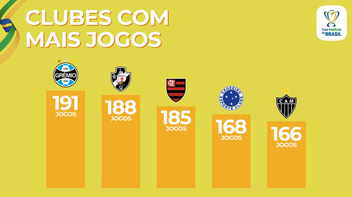 Se liga nos 5️⃣ clubes com mais jogos na minha história: