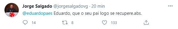 Jorge Salgado deseja pronta recuperação ao pai de Eduardo Paes
